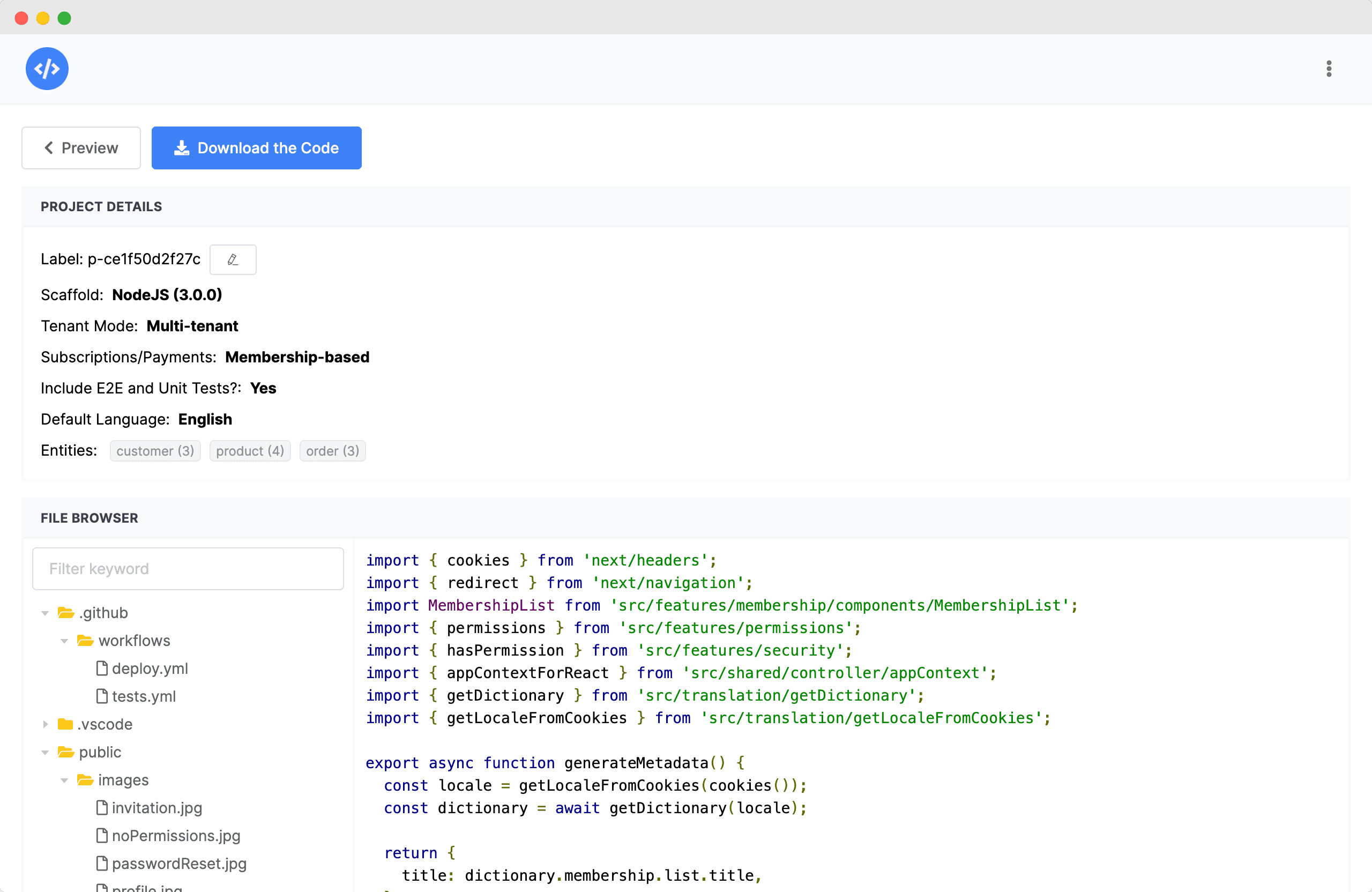 Generate a professional codebase for your next multi-tenant SaaS app using NextJS 14, Prisma, shadcn/UI, TailwindCSS, end-to-end testing, and more—simply by modeling your data.