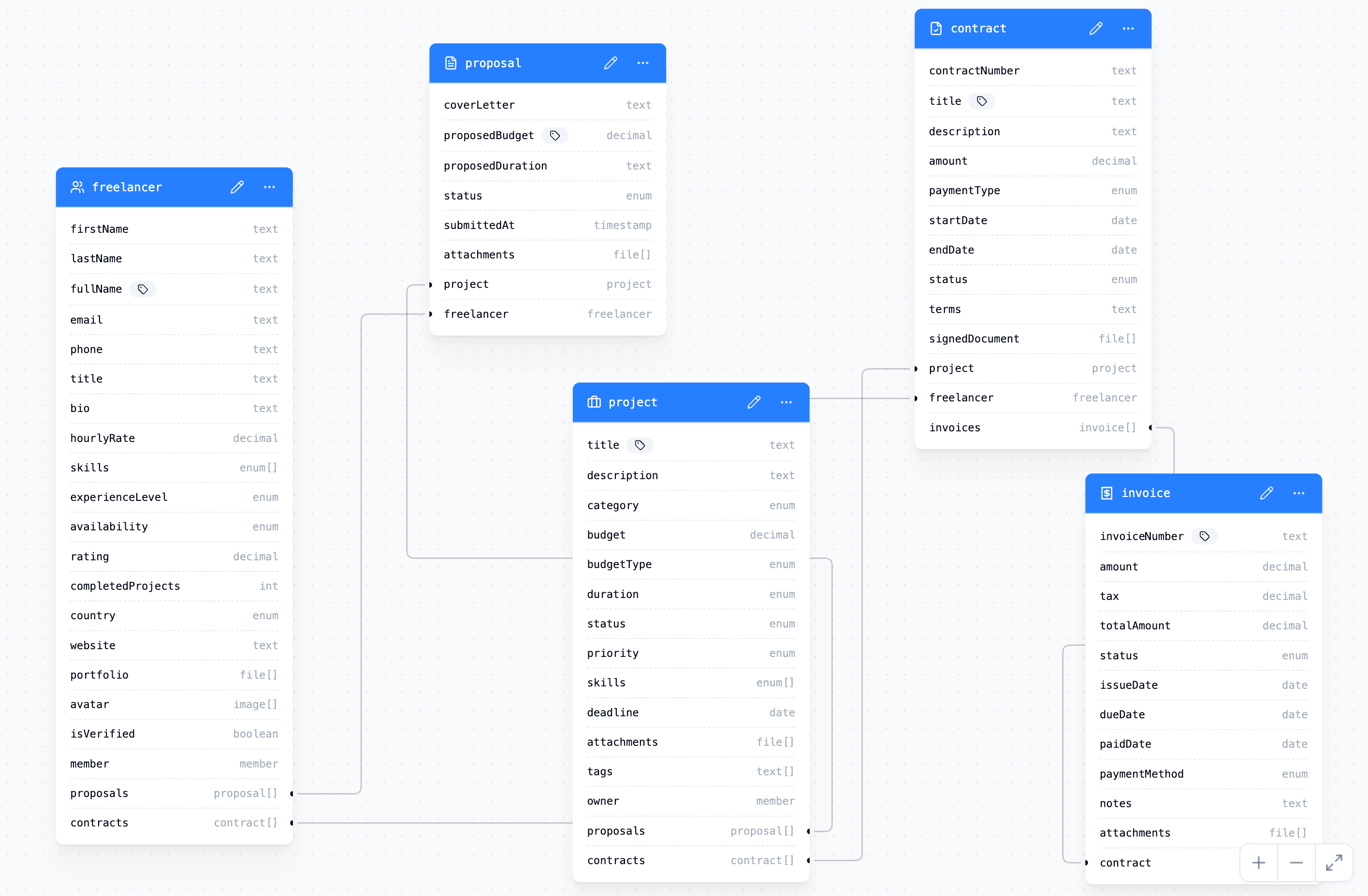 Model the application exactly how you need it, with custom entities, relationships, fields, and validations.